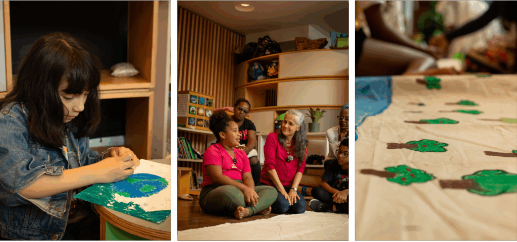 Essas cenas ocorreram durante a oficina Terra Sonhada, conduzida por mim, Rita Oenning da Silva (Usina da Imaginação) dentro do Seminário e Festival Cultura Infância e Natureza: Agir pelo planeta, realizada no Museu do Amanhã (RJ) entre os dias 08 a 11 de outubro de 2025. A oficina trouxe a perspectiva de 14 crianças e adolescentes sobre a terra que sonham, incluindo entre as crianças duas na primeira infância (01 e 5 anos), duas recém completado 7 anos, 6 entre 09 e 12 anos e três entre 13 e 15 anos.