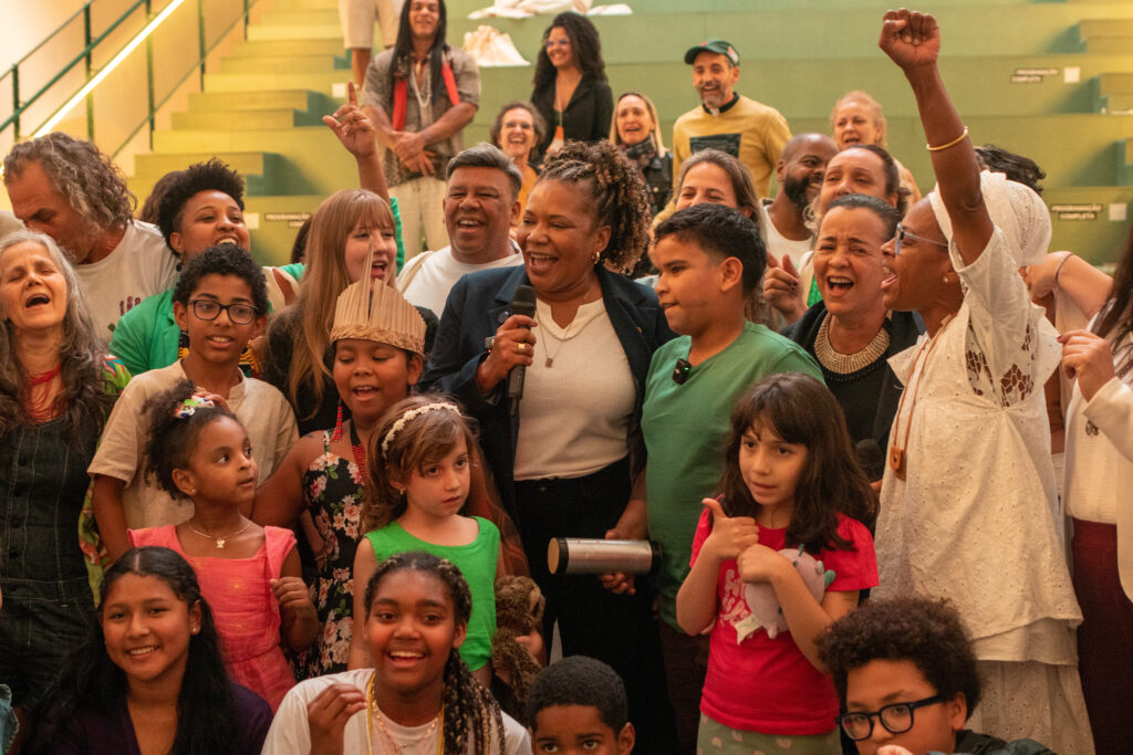 De culturas diferentes: indígenas, quilombolas, afro-brasileiras, migrantes, das cidades, periferias e das zonas rurais, as crianças trouxeram na sua cor de pele, nos movimentos e nas experiências um Brasil com territórios diversos. Também trouxeram elementos de seus biomas em sementes, conchas de mar, areia da praia, folhas recolhidas do chão de seus territórios, especialmente para esse momento de troca. Trouxeram as brincadeiras e jogos que fazem em suas matas, becos, praias, quintais, campos, floresta, aldeias. As crianças e adolescentes, brincaram, cantaram, tocaram instrumentos, dançaram e conversaram muito entre si, e mostraram como são fazedoras de cultura, e confirmaram que têm muito a dizer e a fazer para construir o mundo que sonhamos. De muitas outras falas potentes e reflexivas, na sua forma de interagir entre elas e conosco, as crianças trouxeram ideias que foram debatidas numa sessão especial com a Ministra da Cultura, Margarete Menezes, que as ouviu com cuidado e carinho que merecem as crianças. Suas ideias serão levadas a COP 30. Deixo as próprias crianças falarem.