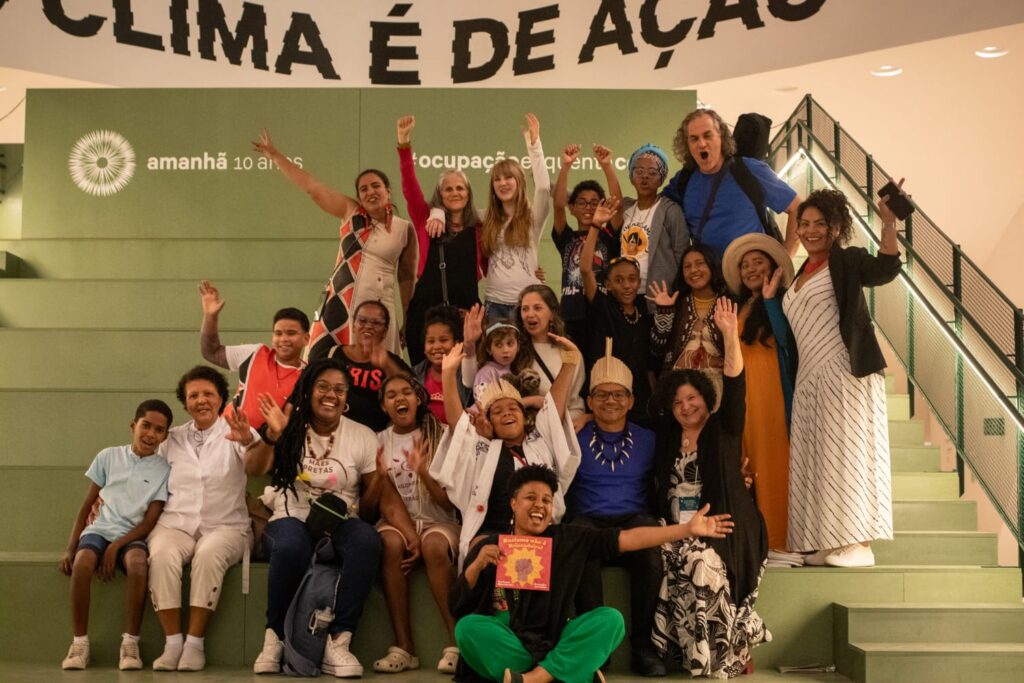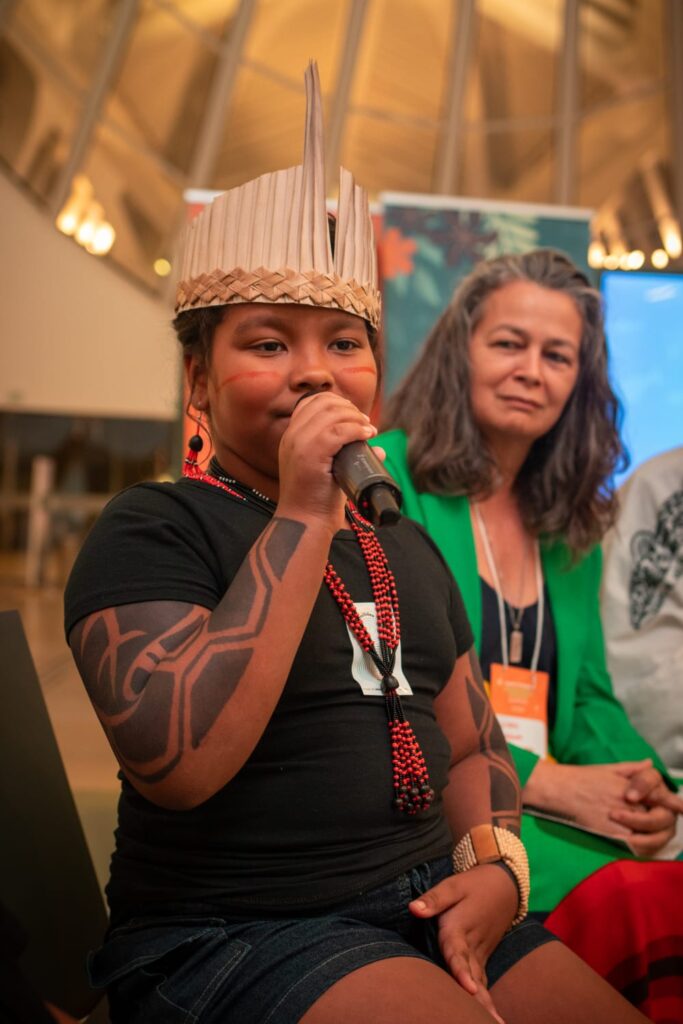 “Queremos brincar subindo em árvores, banhando em rios limpos, colhendo frutos dos pés como nossos ancestrais. Queremos parques, reservas, terras demarcadas e espaços vivos onde o brincar e o cuidar se encontrem”, disseram varias delas.